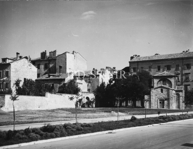Crkva Svete Marije Formoze nakon rušenja Bance d\'Italia sredinom 50-ih, Pula. (fp. 4088) Iz arhive Arheološkog muzeja Istre