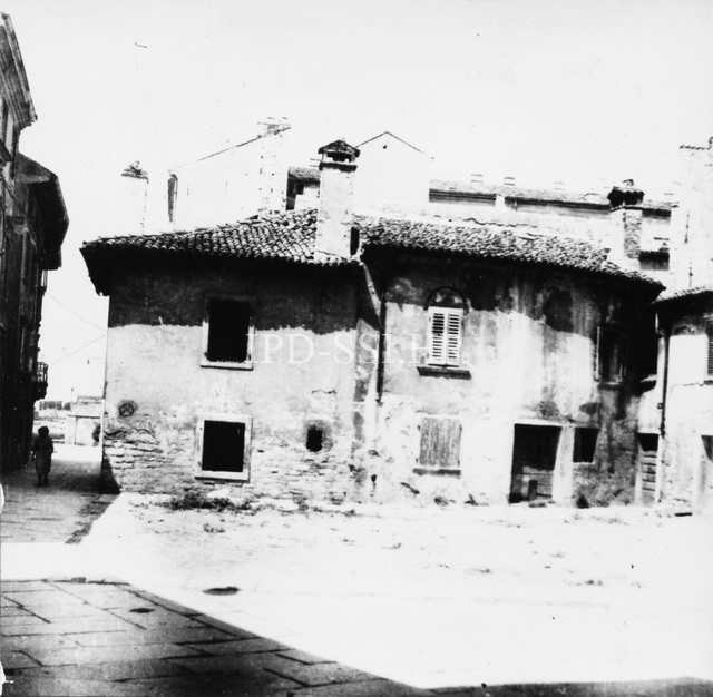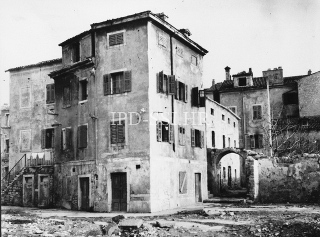 Kuća u Opatijskoj ulici (današnja Ulica benediktinske opatije) uz porušenu cisternu početkom 50-ih, Pula. (fp. 3400) Iz arhive Arheološkog muzeja Istre