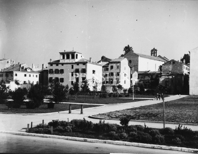 Park na ruševinama nasuprot uprave Uljanika (današnji Park grada Graza) početkom 50-ih godina, Pula. (fp. 3399) Iz arhive Arheološkog muzeja Istre