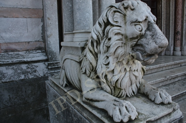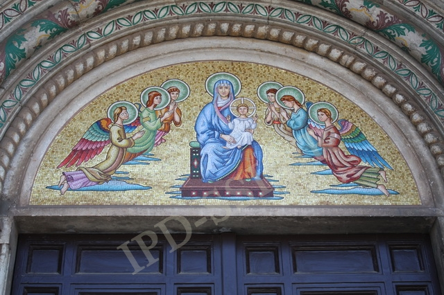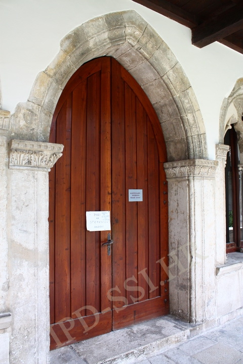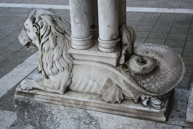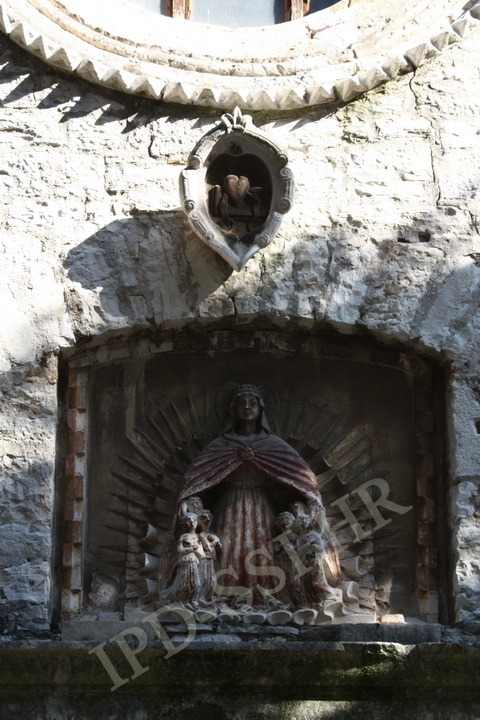 Skulptura u gotičkom stilu iznad ulaza crkve Gospe od Milosrđa. Pula.